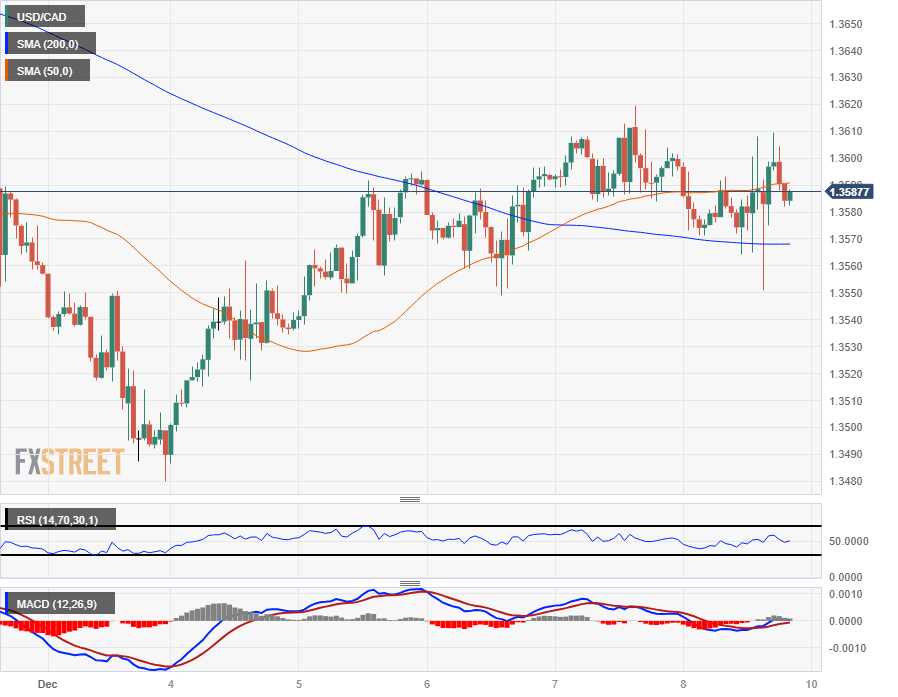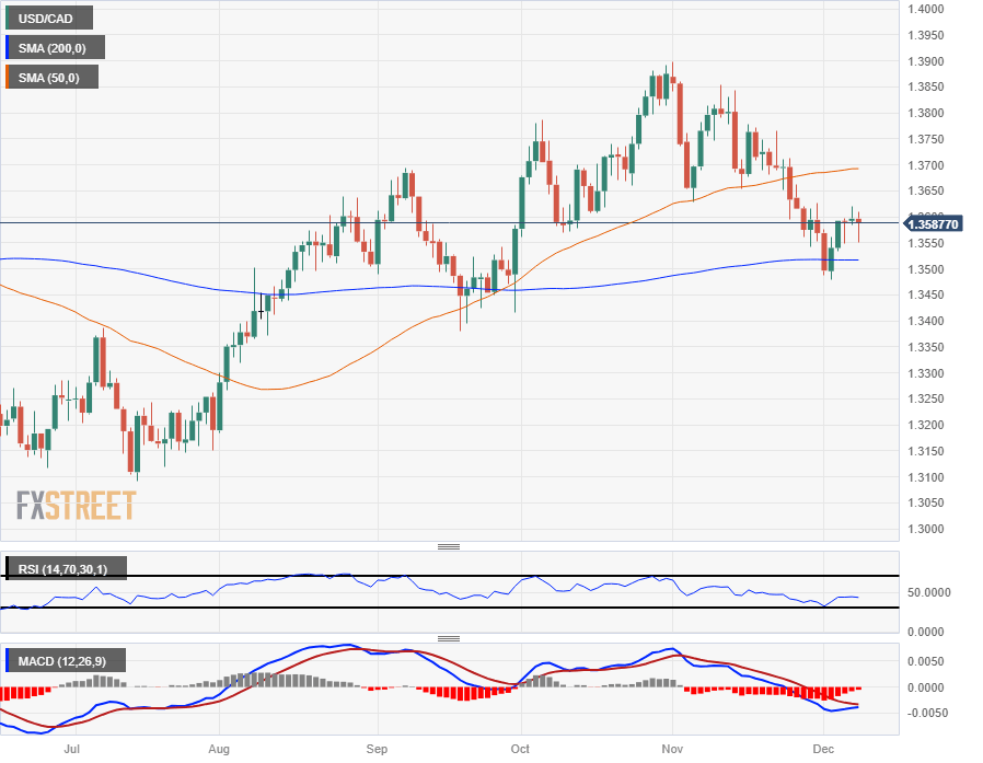 The USD/CAD saw some back-and-forth action on Friday, pointing to 1.3550 before rallying back towards the 1.3600 handle. Intraday action is getting squeezed into the midrange, with technical support coming from the 200-hour Simple Moving Average (SMA) near 1.3570.