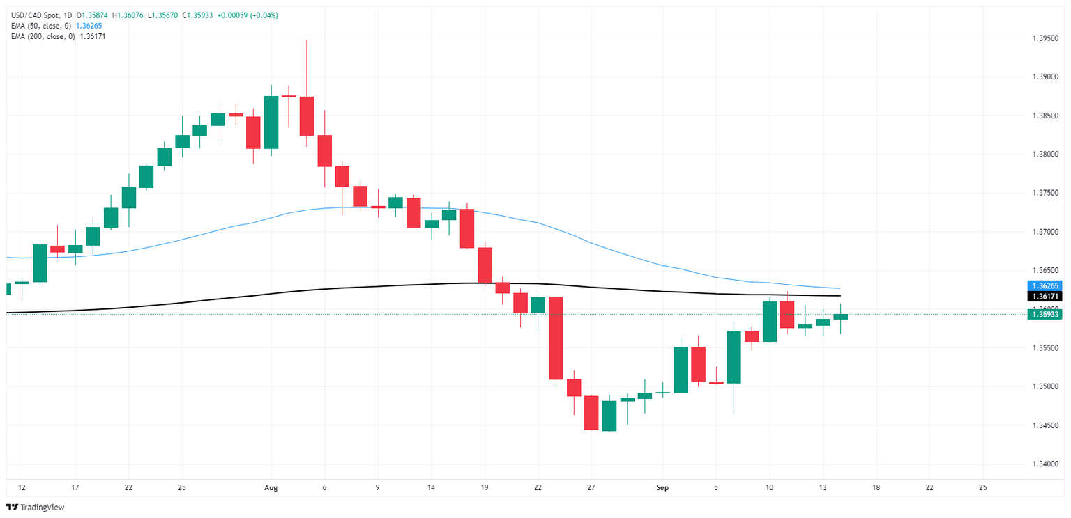 The Canadian Dollar (CAD) continues to struggle to come up with reasons to hit the bids, so it simply doesn’t these days. USD/CAD continues to churn away in a technical no-man’s land just below the 200-day Exponential Moving Average (EMA) at 1.3617, and long-term average are grinding steadily toward the 1.36 key technical level as the pair falls into disrepair.