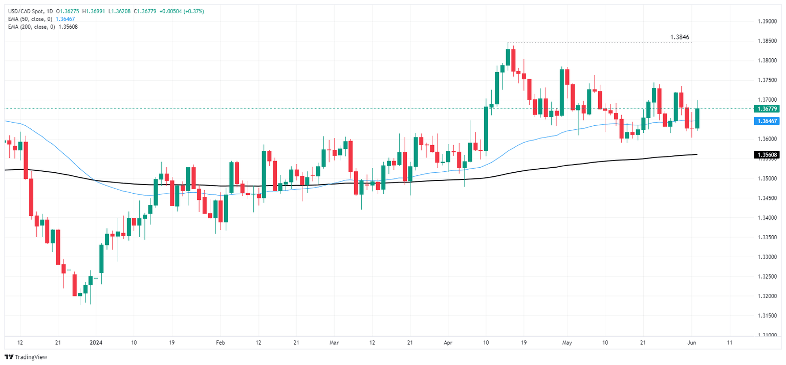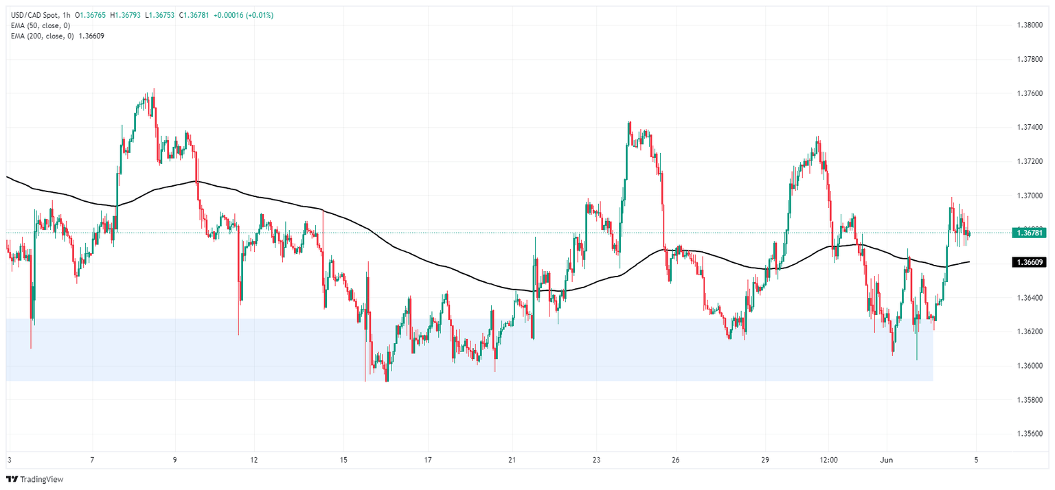 USD/CAD has bounced back from another dip toward 1.3600, climbing into the 1.3700 handle after the Canadian Dollar shed over four-tenths of a percent against the Greenback. The pair is caught in sideways churn, and a near-term demand zone just above 1.3600 is keeping bids bolstered as the CAD struggles to find buyers.