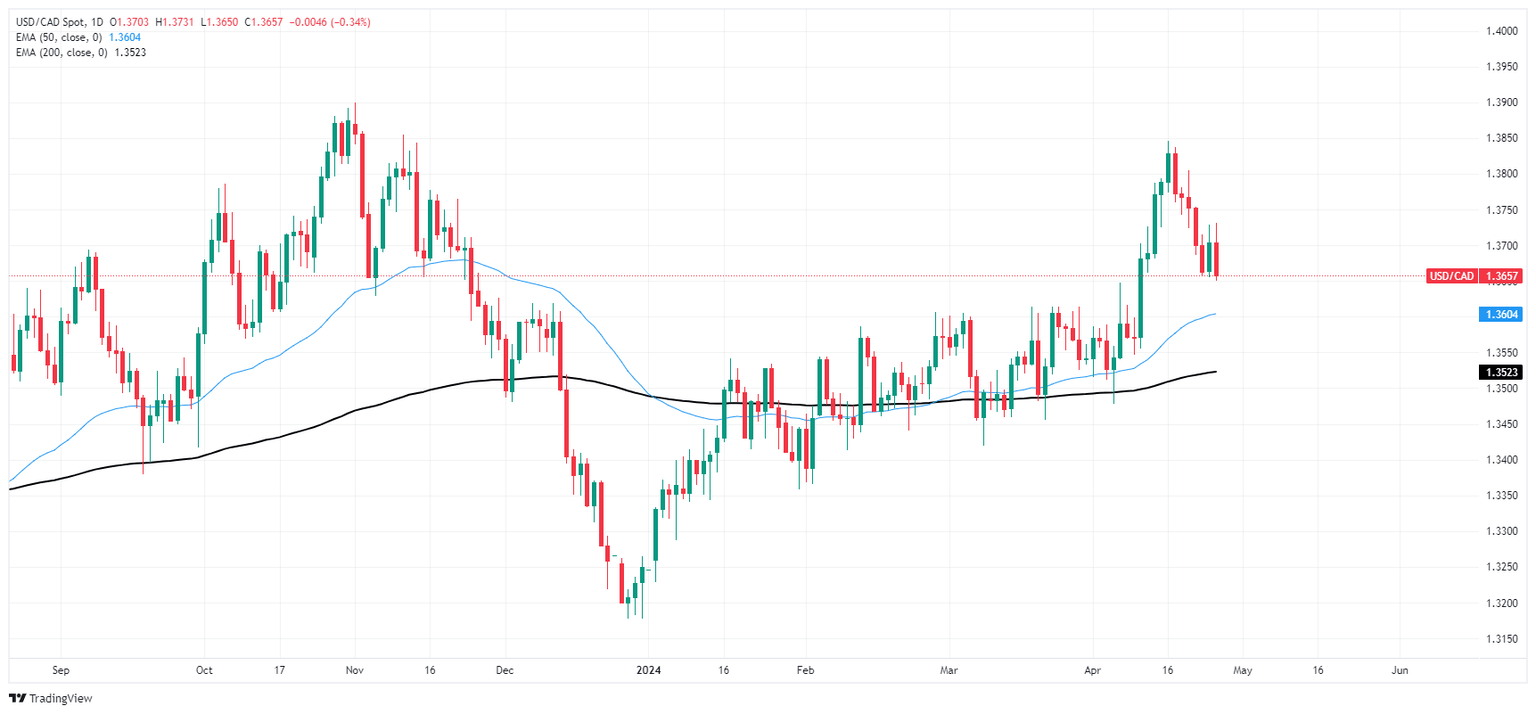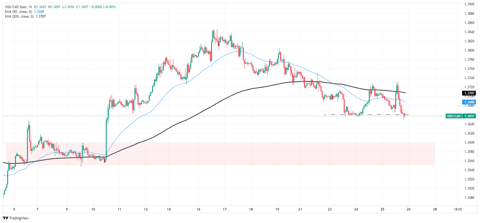 The CAD continues to trade within a tight range near the 1.3700 handle against the US Dollar, and the USD/CAD has priced in a near-term price floor near 1.3660. A topside break is hampered by the 200-hour Exponential Moving Average (EMA) at 1.3710, and a heavy supply zone rests just below current price action below 1.3600.