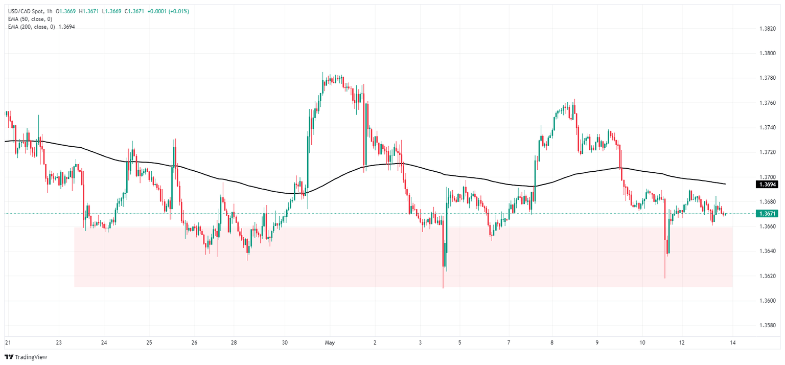 The USD/CAD struggled to find momentum on Monday, holding in place near 1.3680. Bids are treading water just above a near-term supply zone from 1.3660 to 1.3615. Topside momentum is capped by the 200-hour Exponential Moving Average (EMA) just below the 1.3700 handle, while short-sellers have been unsuccessful in dragging the pair back down to 1.3600.