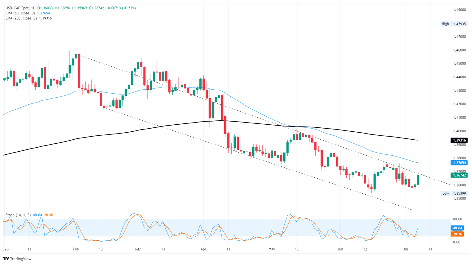 - The Canadian Dollar fell back over one-half of one percent against the rebounding US Dollar on Monday, bolstering the USD/CAD pair back above 1.3650.