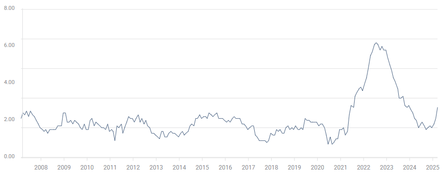 The BoC’s latest rate cut last week is proving to be just as poorly-timed as most market participants expected. Inflation pressures are back above the Canadian central bank’s 2% annualized inflation target, and showing serious signs of accelerating. The BoC has cut interest rates seven times since H2 2024, presumably in an effort to try and tamp down on runaway housing prices, a truly bizarre strategy in a country where the majority of mortgage rates are tied to Canadian bond yields rather than directly correlated to interest rates.