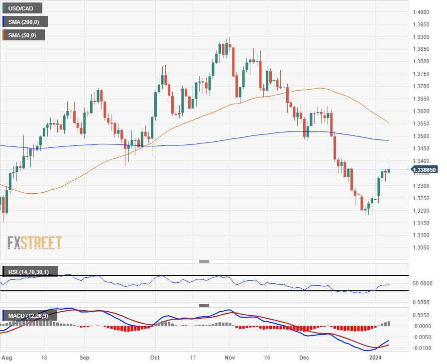 With the USD/CAD pushing into the middle on Friday, the pair is at risk of a pause on the daily candlesticks, hung out to dry in no man’s land below the 200-day Simple Moving Average (SMA) at the 1.3500 handle while the 50-day SMA accelerates into a downside crossover of the longer moving average.