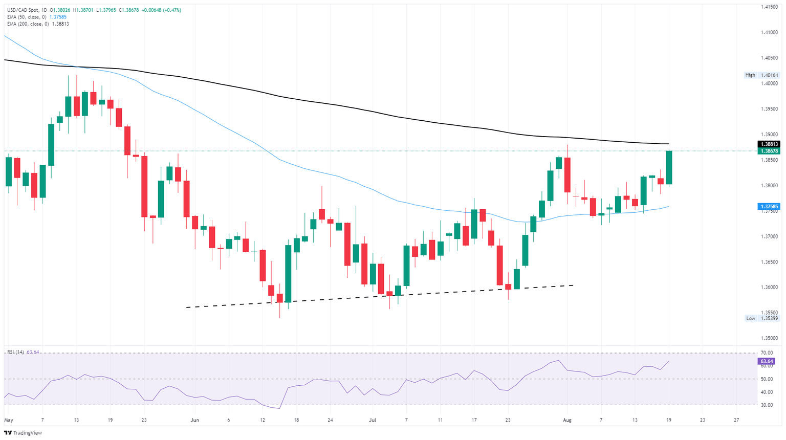 Tuesday’s bearish Loonie flows pushed USD/CAD back into multi-week highs, and the pair is now poised to close higher for the second week in a row if momentum holds through the end of the week. USD/CAD is inching back toward the 200-day Exponential Moving Average (EMA) near 1.3880, which should provide significant technical resistance for bidders to contend with.