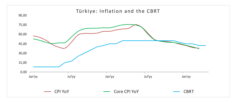 - Decisiveness regarding tight monetary stance is strengthening the disinflation process through moderation in domestic demand, real appreciation in Turkish lira, and improvement in inflation expectations.