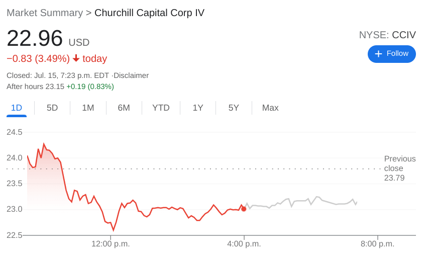 - NYSE:CCIV fell by 3.49% amidst another broader market sell off on Thursday.