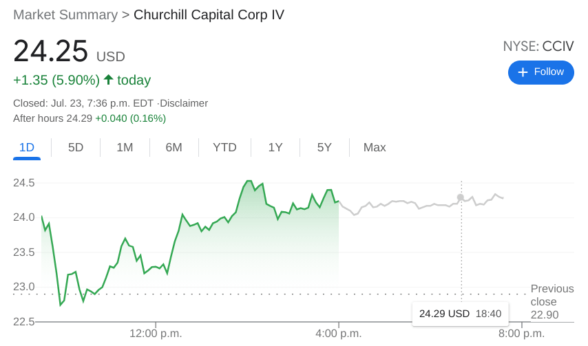 Update: CCIV or LCID as it is now is continuing to push on from its debut day. LCID shares are up 3% already in the first few minutes of trading as the Tesla competitor attracts new investors to the fold. The shares are currently trading at $25.99 for a gain of 3.2% on Wednesday.