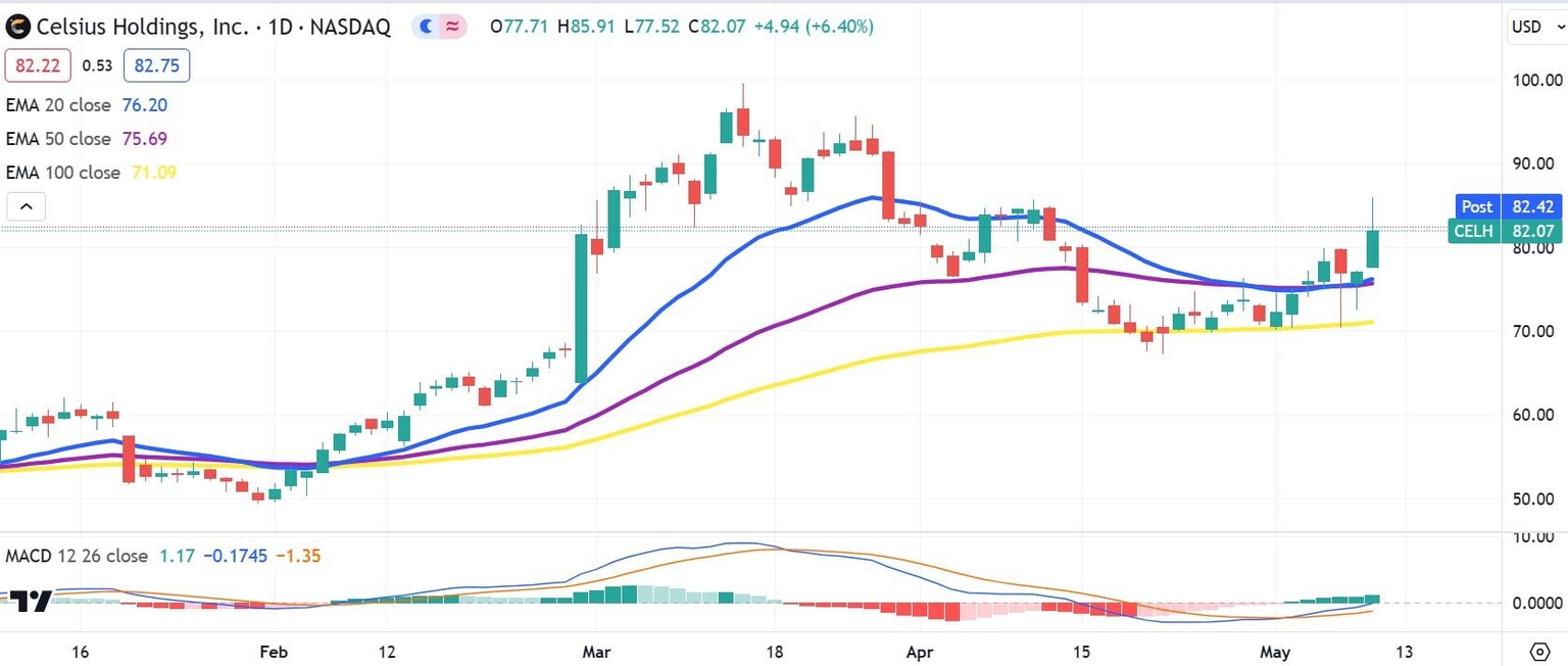 Celsius beat its Q1 GAAP earnings per share (EPS) forecast by 8 cents when it arrived at $0.27, which was more than double per-share earnings a year prior.
