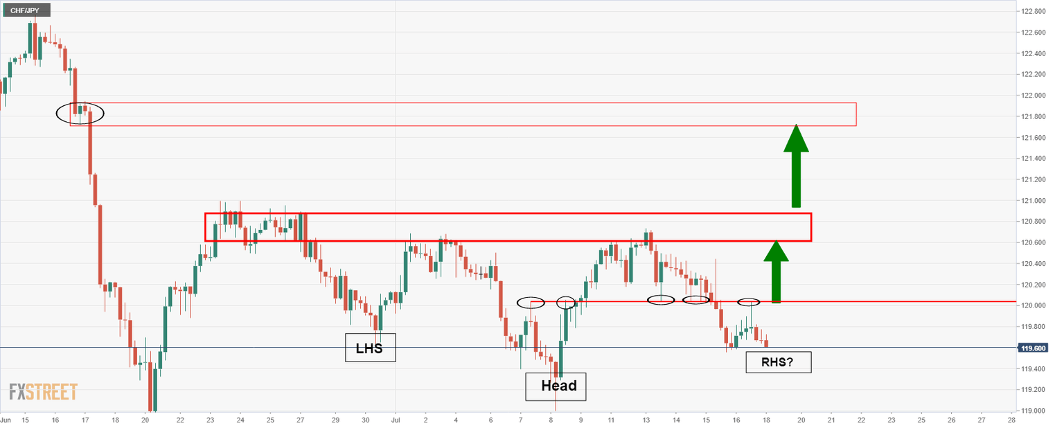 CHF/JPY Price Analysis: Bulls seek break fo H&S neckline
