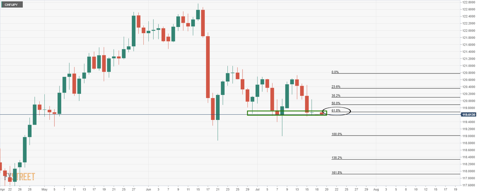 CHF/JPY is holding at critical daily support and a confluence of the 61.8% Fibonacci retracement level.