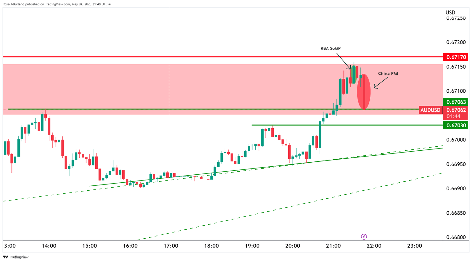 The price is two-way around the Reserve Bank of Australia's statement of Monetary Policy that came out just ahead of the Chinese data.