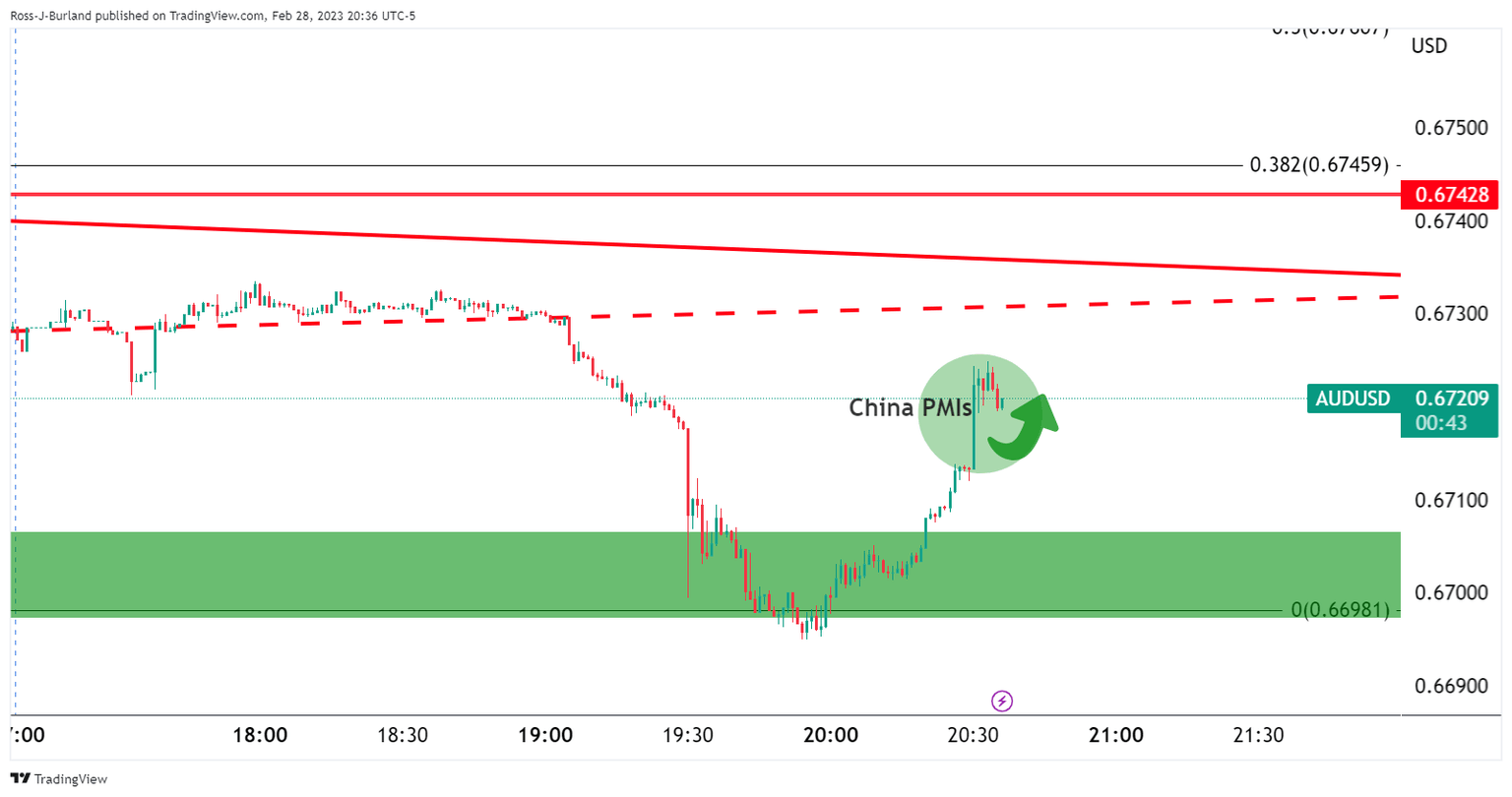 China NBS Manufacturing / Non-manufacturing PMIs beats are a welcome suprise for AUD bulls