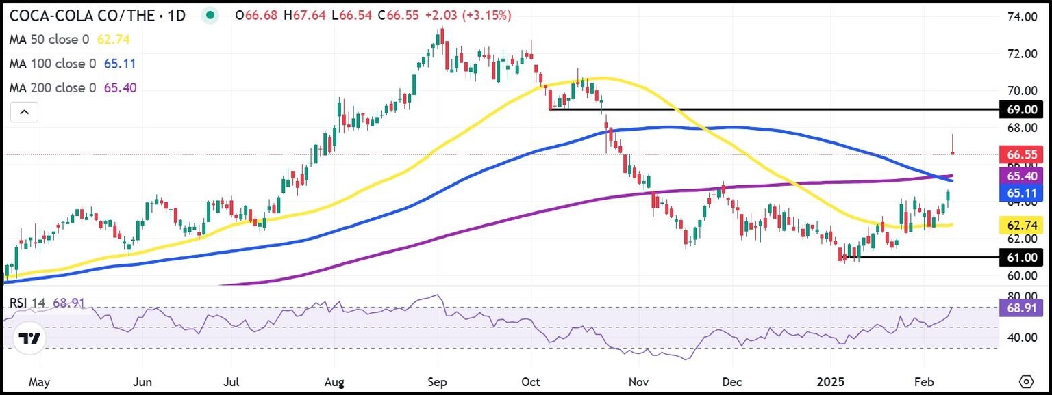 Coca-Cola (KO) stock traipsed 3.7% higher on Tuesday morning on the back of a solid fourth-quarter earnings beat that showed considerable organic growth at the softdrink leader. Additionally, management unveiled a 2025 outlook that guided for continued global growth.