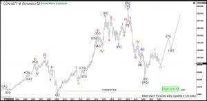 The daily chart below shows the initial nest consisting of waves I and II. First, from the March 2020 lows at 45.75, a cycle higher in red wave I has unfolded as an impulse. It has printed its top in June 2021 at 117.99. Now, a correction lower in red wave II might be still in progress. While price is trading below 111.96 peak, $CON can still extend deeper into 83.75-66.22 area. There, based on our expectations, a reaction higher in the wave III should take place. While above 82.36, wave III might be already in progress. In that case, the target will be towards 1.0-1.618 extensin of the wave I being 154.73-199.46 area and even beyond.