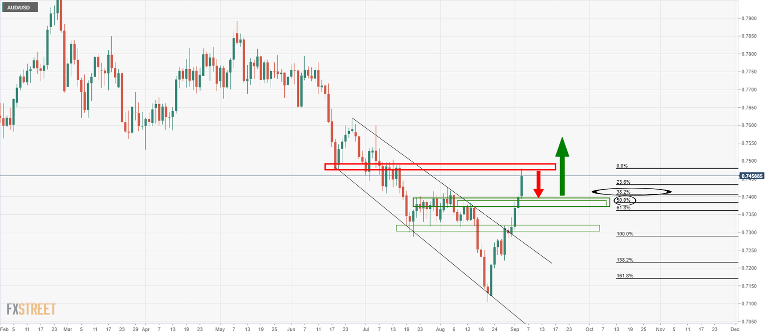 Meanwhile, AUD/USD is capped at 0.7480s and now faces pressures back to test the old resistance block as a fresh support structure.