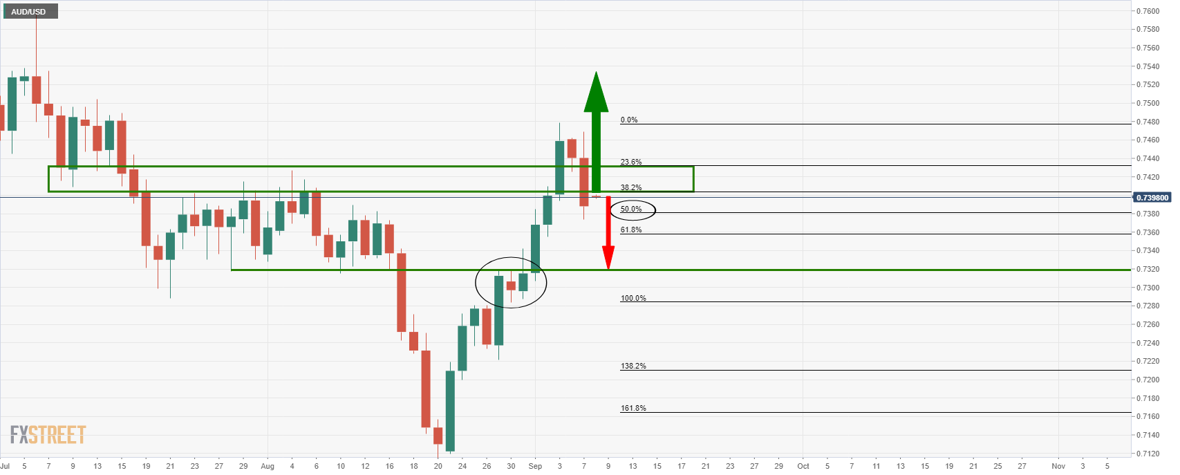 In technical analysis, it was stated that ''the price is on course for a restest of the 38.2% Fibo or a possible run down to the 50% ratio if bulls do not commit at this juncture.''