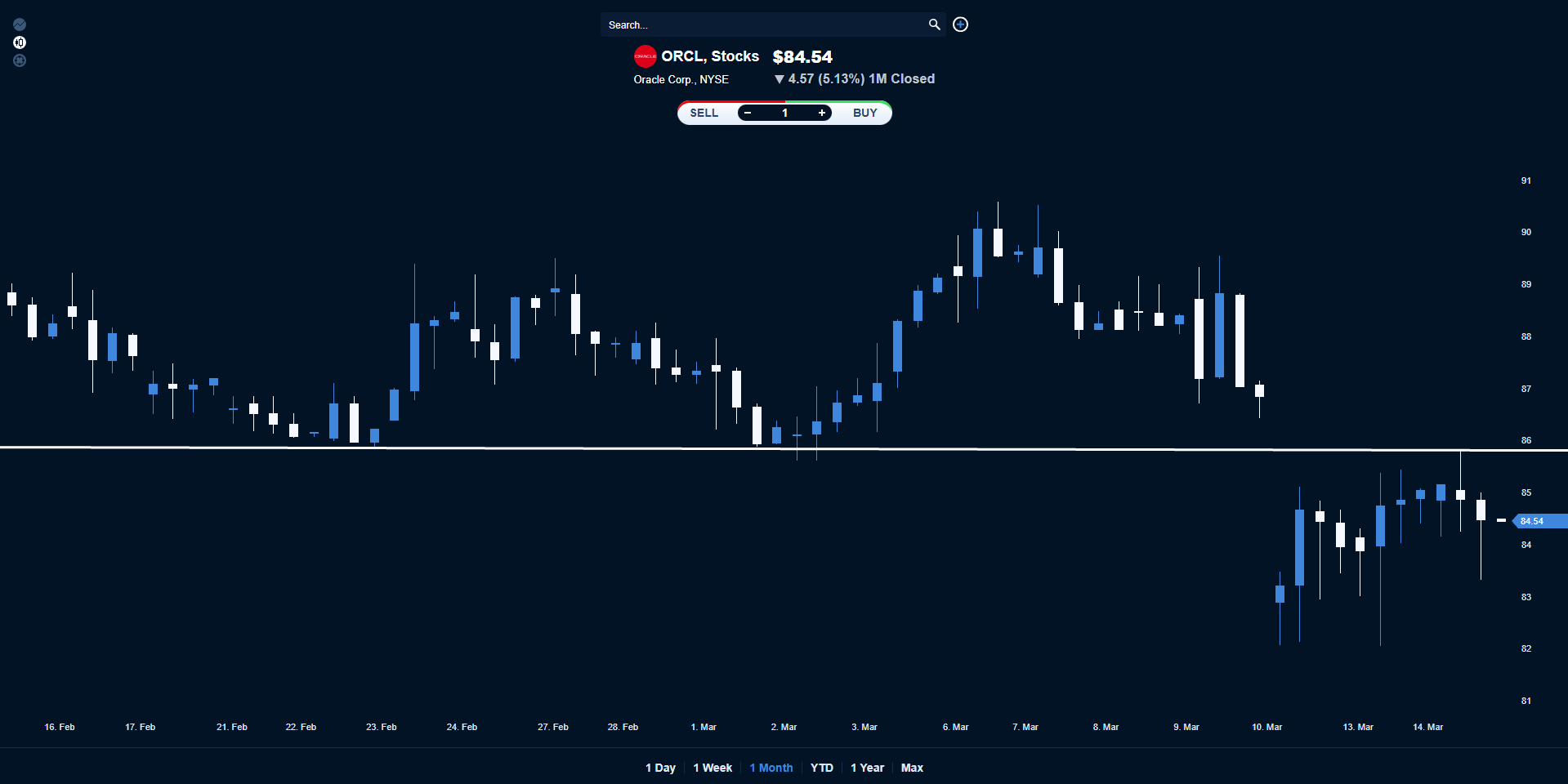 Today’s instrument is the Oracle Corp. stock traded in NYSE exchange under the ticker ORCL.