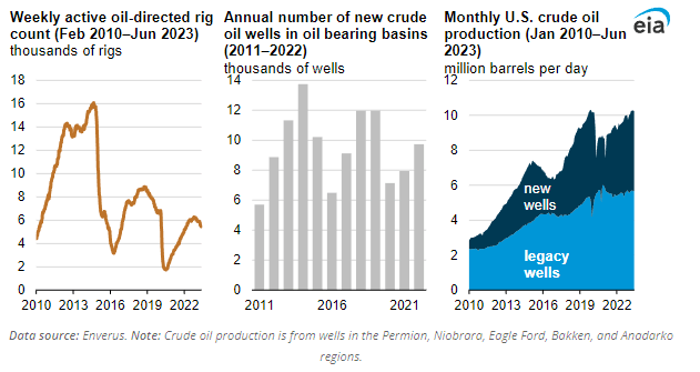However, previously built or “legacy” wells continue to produce higher amounts of Crude Oil as the US energy market becomes increasingly efficient.