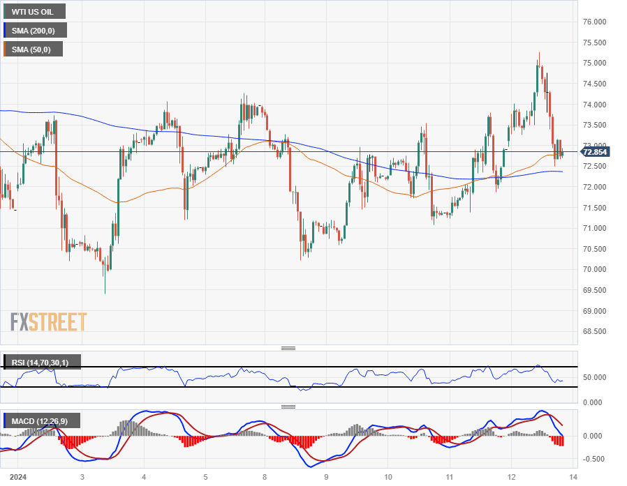 Near-term price action remains constrained close to the 200-hour Simple Moving Average (SMA) near $72.50, with an immediate technical floor priced in at the last swing low just above $71.00.