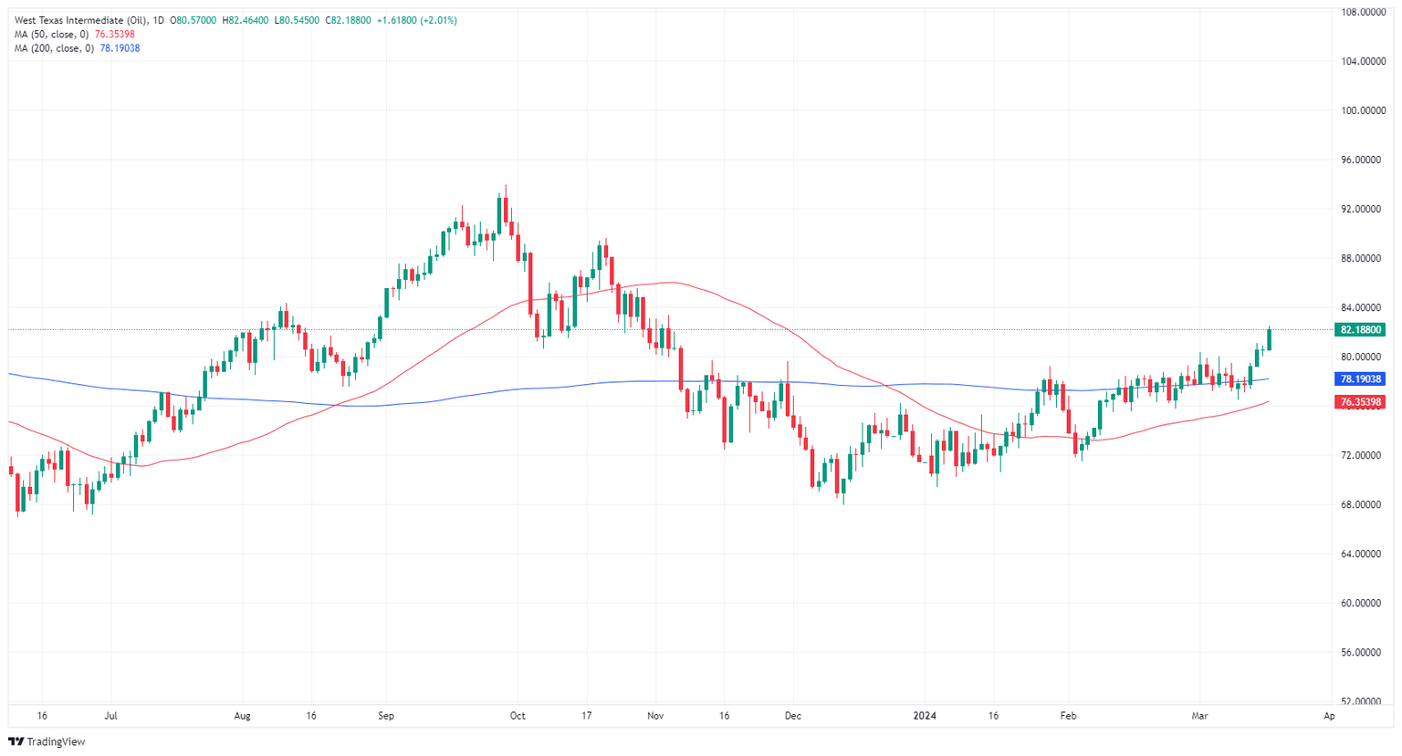 West Texas Intermediate (WTI) US Crude Oil climbed over $82.00 per barrel on Monday, extending a near-term bull. US Crude Oil tested its highest barrel prices since November, hitting a 16-week high of $82.46 to kick off the new trading week.