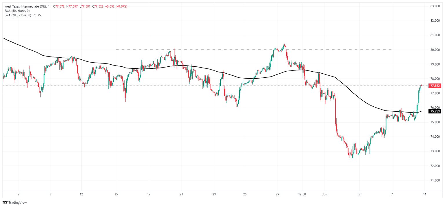 West Texas Intermediate (WTI) US Crude Oil continued a determined recovery to kick off the trading week, with WTI bids crossing $77.50 per barrel and setting a fresh June high as energy traders pile back into fresh bullish bets of a flood of demand sopping up oversupplied Crude Oil markets.