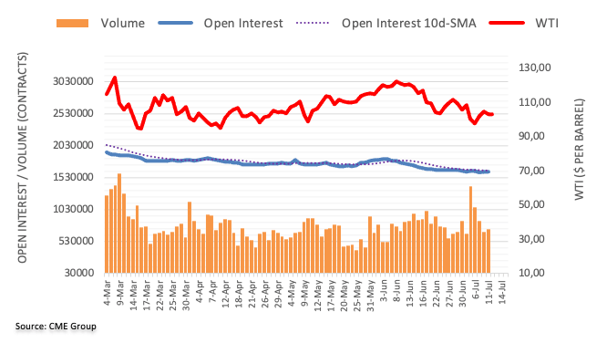 Monday’s daily retracement in prices of the WTI was on the back of diminishing open interest. Against that, further losses seem not favoured for the time being, leaving the next target for the commodity at recent highs just above $105.00 before the weekly peak at $114.00 (June 29).