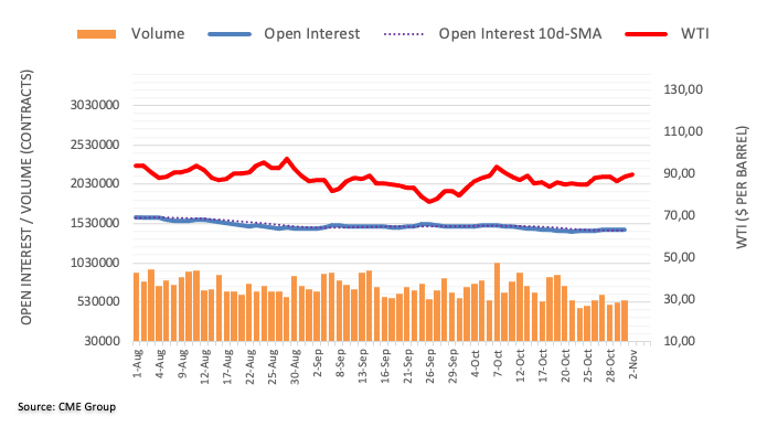 Considering advanced prints from CME Group for crude oil futures markets, traders extended the uptrend in open interest and added around 5.5K contracts on Tuesday, reaching the 7th consecutive daily build. In the same line, volume rose for the second session in a row, this time by around 34.3K contracts.