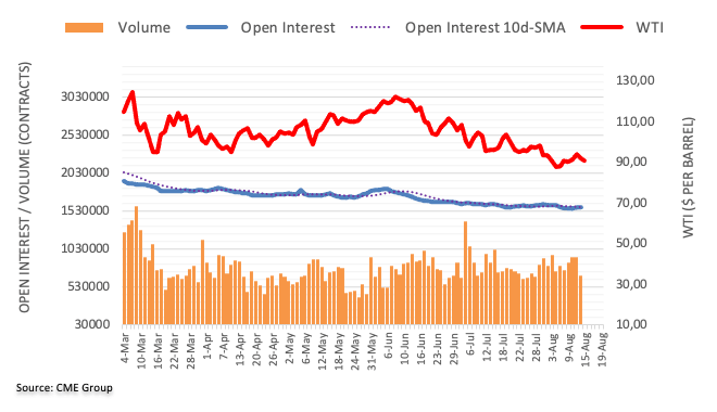 Prices of the barrel of the WTI gave away part of the weekly advance on Friday amidst increasing open interest. Against that, the continuation of the corrective downside now appears on the cards with the immediate target at recent lows near the $87.00 mark per barrel (August 5). So far, occasional bullish attempts in crude oil remain capped by the key 200-day SMA, today at $95.50.