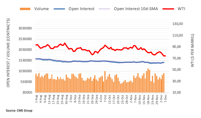 Crude oil prices remained under pressure and dropped to fresh 2022 lows on Tuesday. The daily downtick was on the back of diminishing open interest, indicative that further decline could take a breather in the very near term. The broader bearish sentiment in WTI, however, leaves the door open to a probable revisit to the $70.00 mark per barrel.
