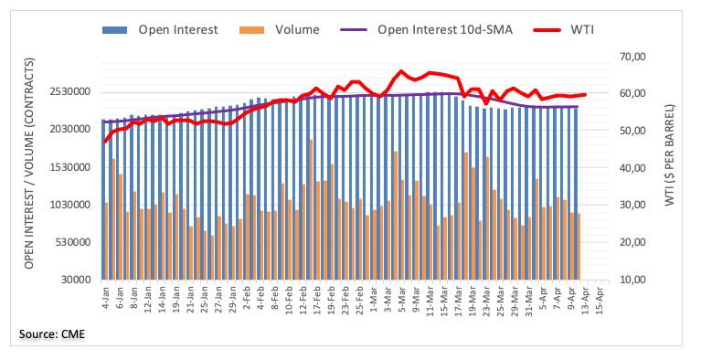 Prices of the West Texas Intermediate charted another inconclusive session on Monday amidst shrinking open interest and volume, leaving the consolidative mood unchanged for the time being. On the downside, the $57.50 mark continues to hold the downside.