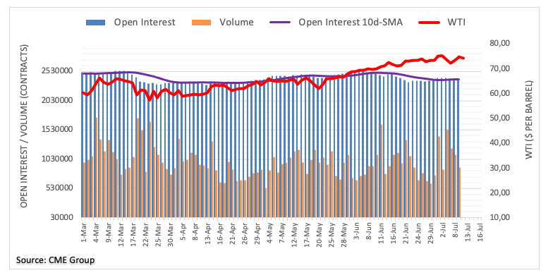 Friday’s positive price action in WTI was accompanied by shrinking open interest and volume, noting the presence of short covering behind the recent upside. That said, extra gains are not favoured in the very near term at least, while the $70.00 mark per barrel emerges as the immediate support.