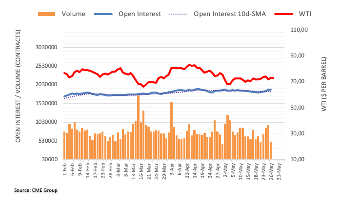 Friday’s bounce in prices of WTI was amidst shrinking open interest and volume, removing strength from the continuation of the rebound at least in the very near term. That said, the commodity is likely seen maintaining the current consolidation range for the time being. Gains, in the meantime, appear limited above the $74.00 mark per barrel so far.