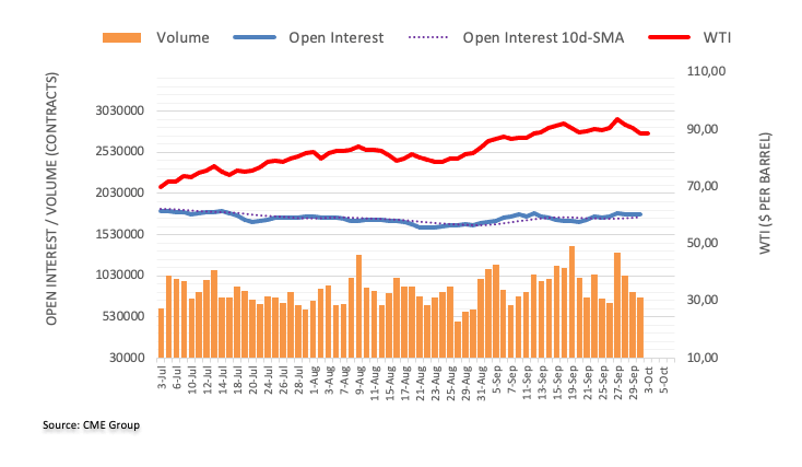 CME Group’s flash data for crude oil futures markets noted traders reduced their open interest positions for the third consecutive session on Monday, this time by around 1.3K contracts. Volume followed suit and shrank for the third straight session, now by around 55.8K contracts.