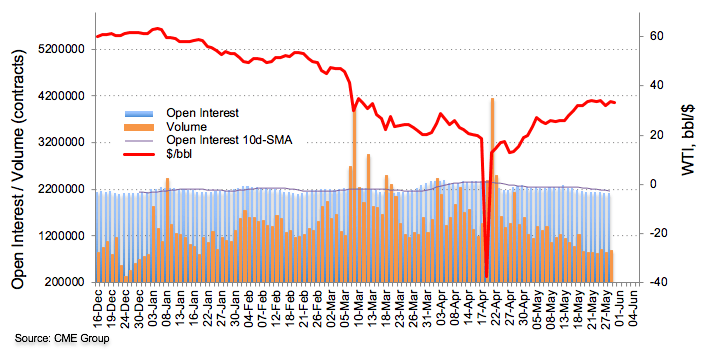 Prices of the WTI are expected to keep the consolidative mood at least in the very near term. Further bullish attempts are not ruled out, however, following the recent positive price action amidst rising open interest and volume. In this regard, the key $35.00 mark per barrel still acts as a very strong resistance.