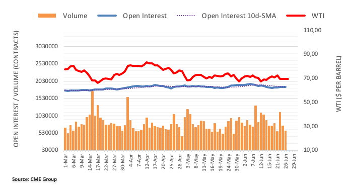 WTI prices started the week on a positive mood, although a convincing breakout of the $70.00 mark per barrel remained elusive. The uptick was accompanied by rising open interest, which suggests the likelihood of a near-term bounce. Next on the upside for the commodity emerges the recent weekly tops beyond the $72.00 yardstick.