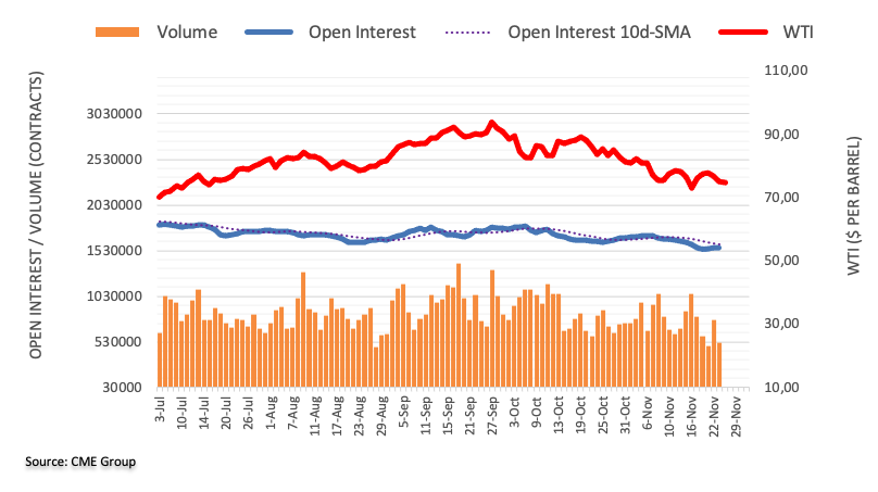 Prices of the WTI extended their downtrend on Friday amidst rising open interest, which leaves the door open to the continuation of this move to, initially, the area of November lows near the $72.00 mark per barrel (November 16).