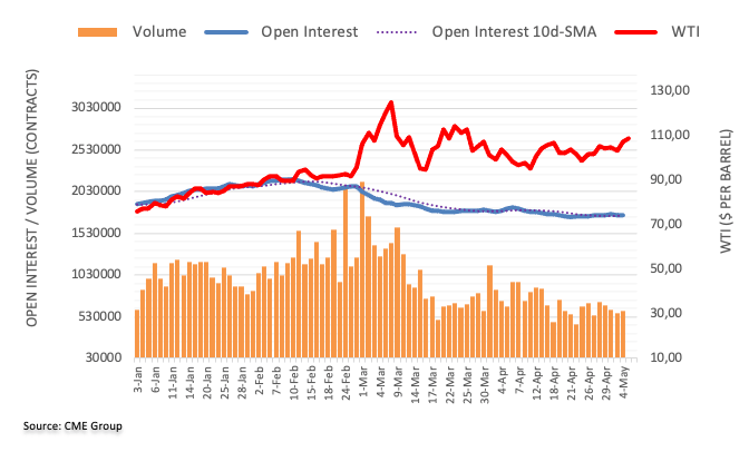 WTI prices posted strong gains on Wednesday. However, the uptick was in tandem with a small drop in open interest, which could hint at the idea that further gains could be losing some momentum. In the meantime, crude oil prices continue to target the April high past the $109.00 mark per barrel in the very near term.