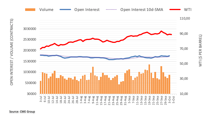Considering advanced prints from CME Group for crude oil futures markets, open interest rose by around 19.5K contracts after three consecutive daily pullbacks on Tuesday. Volume followed suit and went up by nearly 20K contracts, reversing at the same time three straight daily drops.