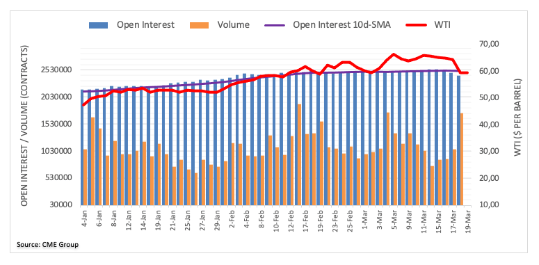 Prices of the WTI plummeted near 8% on Thursday, recording new 5-week lows near the $58.00 mark. The strong pullback, however, was amidst the continuation of the downtrend in open interest, allowing for a rebound in the very near-term and leaving out of favour a deeper decline.