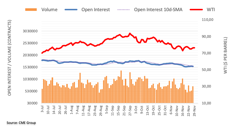 Tuesday’s marked advance in prices of WTI was on the back of shrinking open interest, which removes strength from a sustained bounce in the very near term. Against that, there is still scope for crude oil prices to revisit the area of November lows near the $72.00 mark per barrel (November 16).