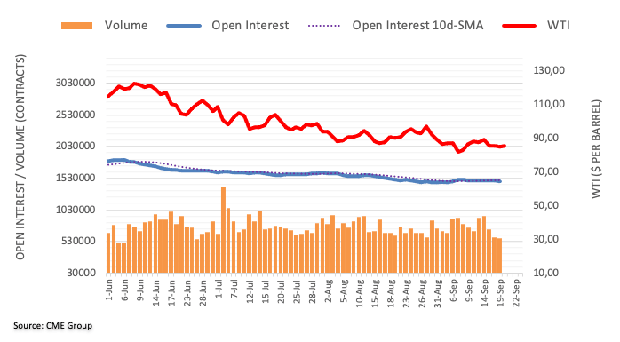 Considering preliminary readings from CME Group for crude oil futures markets, traders reduced their open interest for the fourth consecutive session on Monday, this time by around 8.4K contracts. Volume followed suit and shrank for the third session in a row.