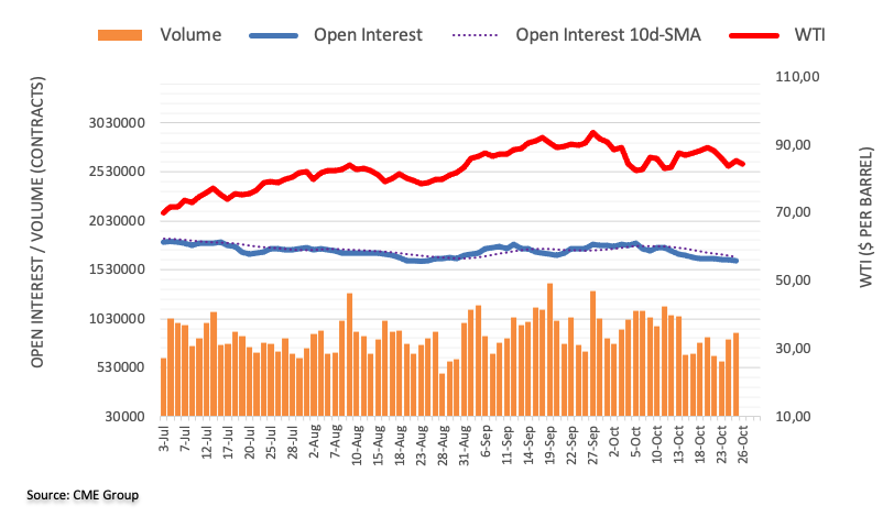 WTI prices rebounded markedly after three consecutive daily pullbacks on Wednesday. The bounce in prices of the commodity was amidst shrinking open interest, indicating that the continuation of the recovery could face some headwinds in the very near term. On the downside, the key contention emerges at the $80.00 mark per barrel for the time being.