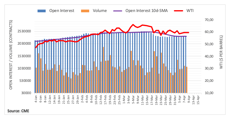 Prices of the WTI charted small gains amidst the broader consolidation theme on Thursday, all against the backdrop of diminishing open interest and volume. That said, the continuation of the current side-lined mood is expected to extend further in the very near-term, with the $57.50 area holding the downside for the time being.