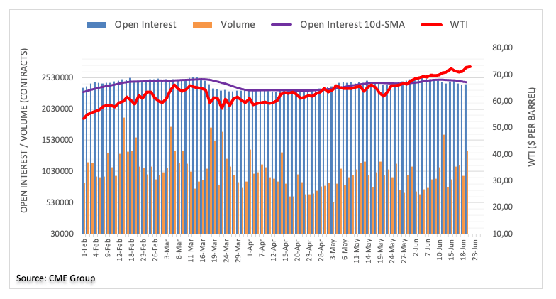 Prices of the WTI briefly probed the $74.00 mark at the beginning of the week, or new 2021 highs. The uptick was accompanied by rising open interest and volume, leaving the door open to the continuation of the rally for the time being. Against this, the next hurdle of note comes in at the 2018 high just below the $77.00 mark per barrel (October 2018).