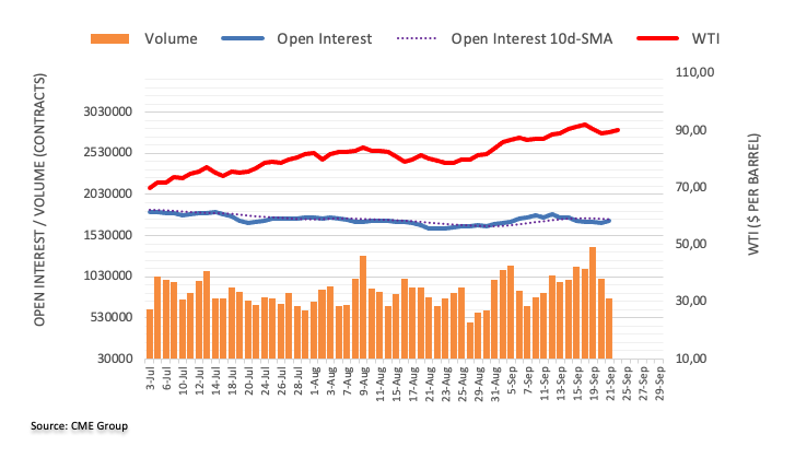 Thursday’s uptick in prices of WTI was on the back of increasing open interest and allows for the continuation of the rebound to retarget the so far September peak at $92.63 per barrel (September 19).\
