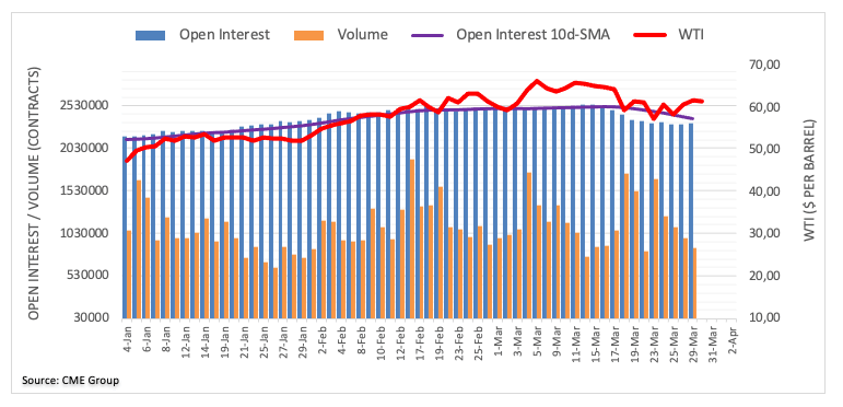 CME Group’s flash data for Crude Oil futures markets noted traders increased their open interest positions by around 17.6K contracts on Monday, reversing two consecutive daily pullbacks. On the other hand, volume extended the downtrend and shrunk by around 111.3K contracts.