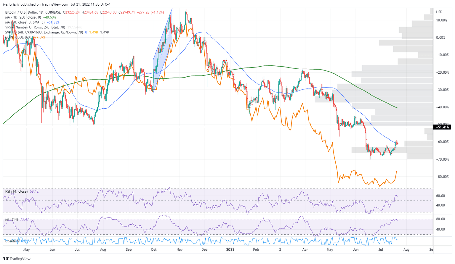 Pretty much the same deal here: a strong correlation between COIN stock and Bitcoin. However, Coinbase has a bit more to it than MSTR and as mentioned its business is under attack from GameStop. GME stock has been getting interest as its NFT marketplace has been outperforming NFT trading on Coinbase so far in July. GameStop is a new entrant to the space but a powerful name among retail traders and carries strong brand recognition.