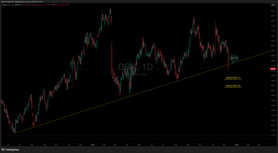 DBX cloud crash: Dropbox stock sinks below critical trendline—Can $26.13 hold the line?