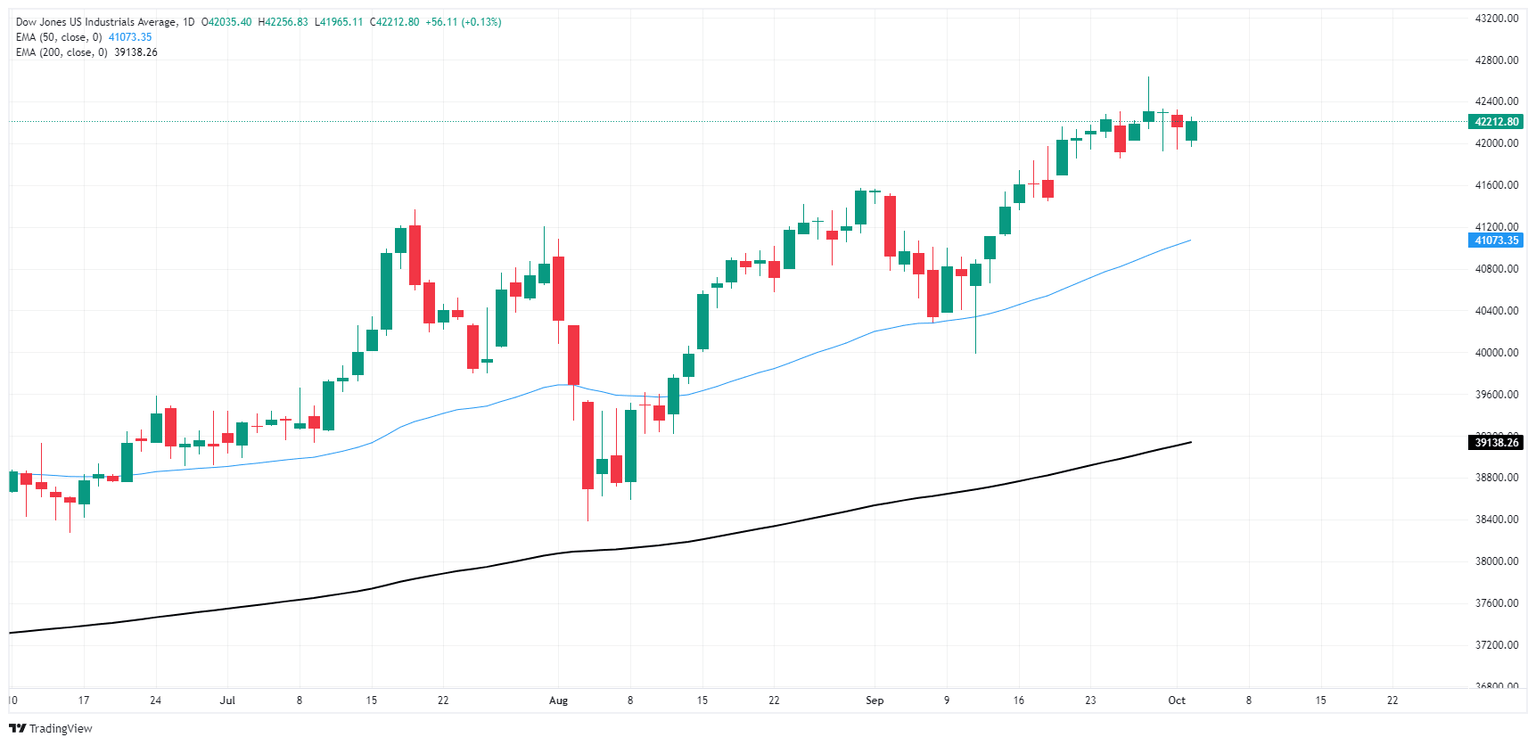The Dow Jones Industrial Average (DJIA) is caught in a bit of a sideways trap in the first week of October as geopolitical concerns weigh on risk appetite. Investors are jostling for position ahead of Friday’s bumper print of US Nonfarm Payrolls (NFP) jobs data with future rate moves from the Federal Reserve (Fed) potentially riding on labor figures.